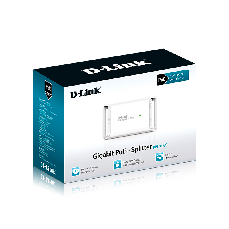 DPE-301GS Gigabit PoE+ Splitter proporciona conectividad Gigabit y potencia eléctrica para dispositivos antiguos que no son compatibles con PoE, separando suministro de energía y datos de una fuente PoE.