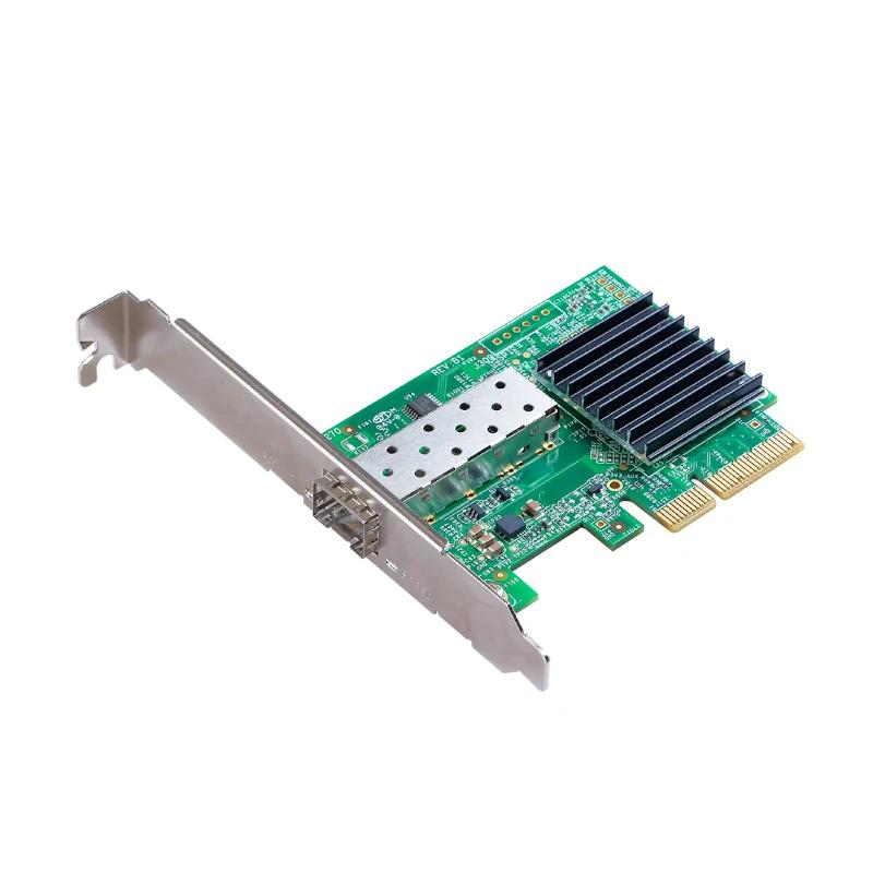 | Características | – Interfaz Interfaz de bus host PCI Express Gen 3 x 4 Ranura para Ethernet SFP+ de 10 Gigabit – Indicador LED: velocidad, Actividad – Trama gigante: 16 KB – Máxima velocidad de datos: 10 Gbps – Calidad de Servicio (QoS) – Baja latencia (<4 µs) – Extremo S grande (hasta 16 KB) – Descarga de suma de comprobación IP, TCP y UDP Otras características – Estándares: IEEE 802.3ae 10GBase-X 10 Gigabit Ethernet IEEE 802.3x Dúplex completo y control de flujo IEEE 802.1p Calidad de servicio (QoS) IEEE 802.1Q Virtual LANs VLANs – Compatibilidad SO: Windows 8/8.1/10/11 (32/64-bit) – Certificación: CE FCC Ambiente – Temperatura de funcionamiento: 0 °C~40 °C – Temperatura de almacenamiento: -40 °C~85 °C – Humedad de funcionamiento: 10~90 % (sin condensación) – Humedad de almacenamiento: 5~90 % (sin condensación) Dimensiones y peso – 82 x 62 x 15 mm – 48 g |