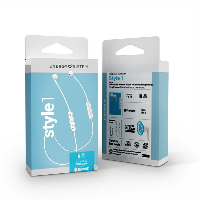 Los Earphones Bluetooth® Style 1 te ofrecen un sonido nítido y claro, gracias al Crystal clear sound. Disfruta de tus canciones favoritas como nunca, y deja que la música llene cada momento del día.