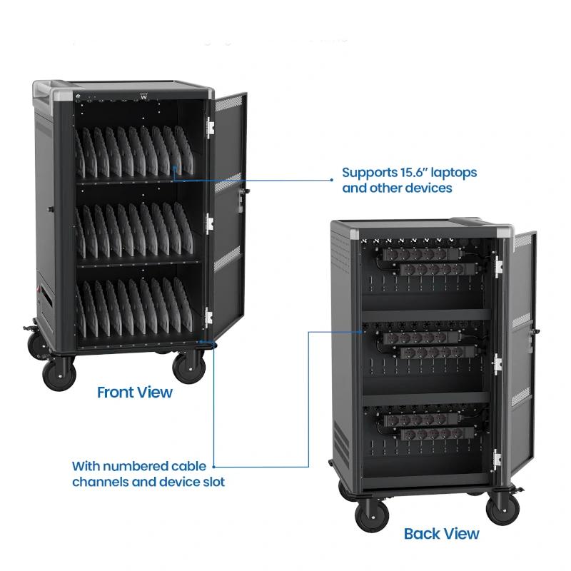 | Características | – Material: Acero laminado en frío de calibre 18 de alta calidad – El paquete incluye: Carro / Cable de alimentación de CA / Llaves – Gestión de cables – Sistema de carga: detección inteligente de energía – Dimensiones de la ranura del dispositivo: 422 × 34,3 × 286 mm – Completamente ensamblado – Humedad de funcionamiento: 20% a 80% RH – Temperatura de funcionamiento: -10°C a 40°C – Humedad de almacenamiento: 20% a 90% RH – Temperatura de almacenamiento: -40°C a +60°C Dimensiones y peso – 600 x 580 x 1127 mm |