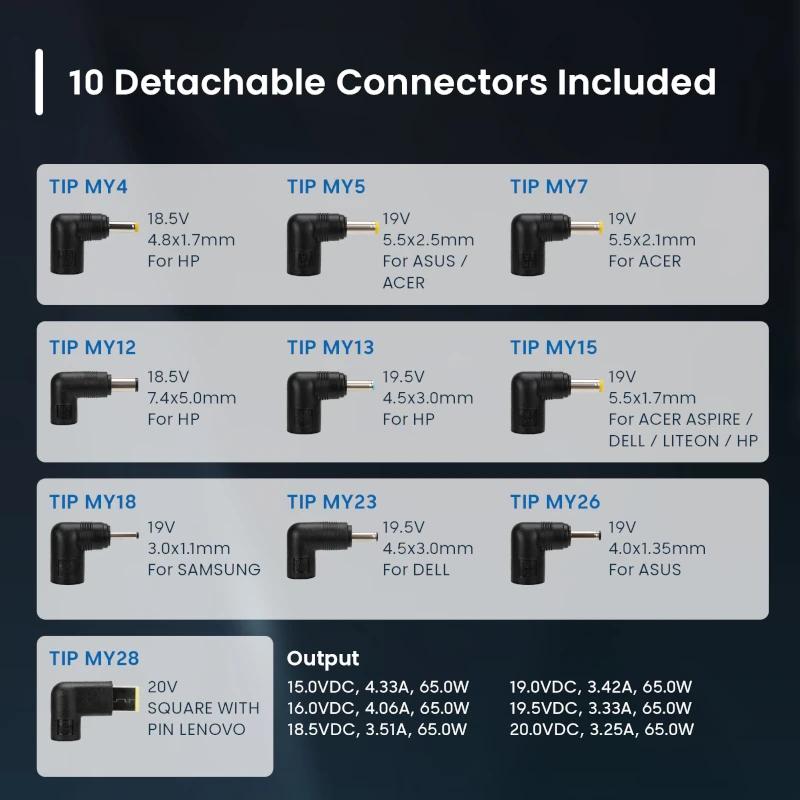 EWENT Cargador Auto. Univer Notebook 65W 10 Puntas