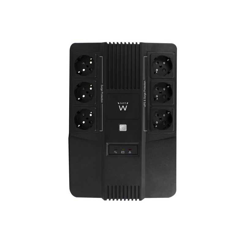 Proteja su PC y archivos valiosos contra fallas de alimentación y sobretensiones con el SAI Línea Interactiva de 600 VA EW3945 con AVR y protección contra sobretensiones. El SAI está equipado con 6 tomas de salida. El SAI le notifica con una alarma sonora y una notificación de LED durante un corte de alimentación. Le proporciona aproximadamente 10 minutos adicionales de carga de 120 W para guardar sus archivos y apagar su PC de manera segura. El EW3945 le protege frente a sobretensiones, cortocircuitos, descargas, excesos de carga y sobrecargas. El SAI se puede montar en la pared.