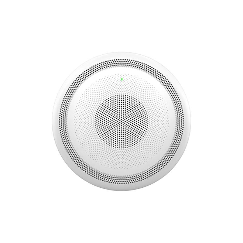 | Características | Audio – Altavoz manos libres full duplex – Camara acustica HD – Cancelacion de eco acustico avanzada – Microfonos: 3 direccionales con MMAD y beamforming + 1 omnidireccional auxiliar – Codecs: Opus, G.722 Conectividad – WiFi doble banda 802.11 a/b/g/n/ac – Bluetooth integrado – 1 x Ethernet 10/100 Mbps – PoE y PoE+ Interfaces – Entrada multiproposito de 2 pines para perifericos |