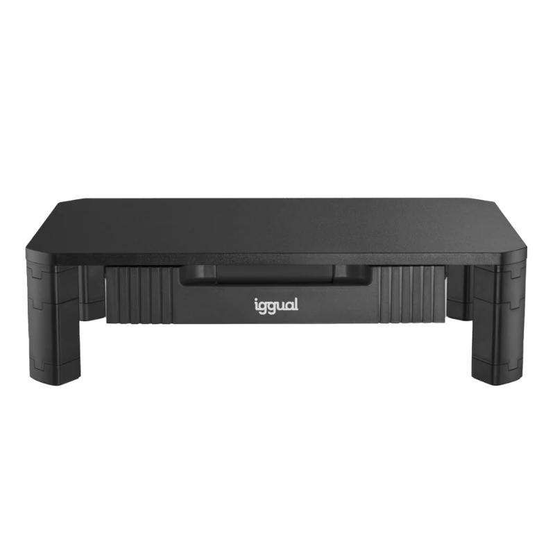 | Características | – Soporte elevador de monitor con patas – Elevable con patas desmontables – Patas con goma antideslizante – 1 cajón frontal (319 ancho x 300 profundo x 69 alto mm) – 2 separadores internos – Peso máximo soportado: 20 kg – Altura mínima: 10 cm – Altura máxima: 13 cm – Superficie de apoyo: 48 x 30 cm – Espesor de la mesa de apoyo: 12 mm – Peso neto: 2,09 kg – Medidas (embalaje): 515 x 330 x 78 mm – Peso bruto: 2,43 kg |