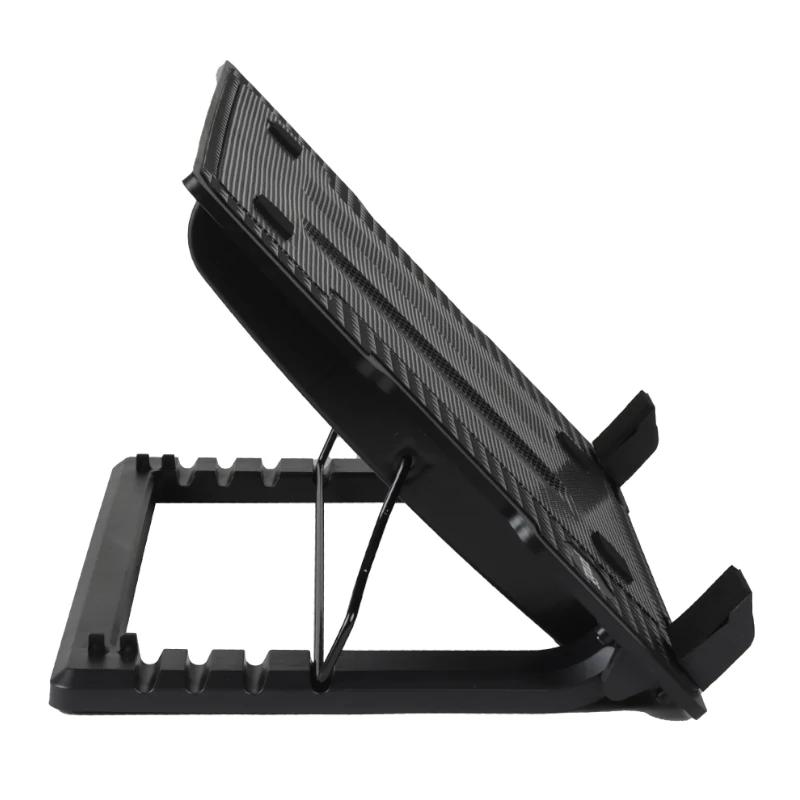 | Características | – Soporta tablets y portátiles de hasta 17″ – 2 x puertos USB (energía + adicional) – Energía USB: 5V DC / 3,5W / 0,7A – 2 x ventiladores ultra-silenciosos – Diámetro ventiladores: 90 mm – Velocidad ventiladores: 1400±10% RPM – Botón ON/OFF – Base antideslizante – Apoyos extraíbles y ajustables – 4 ángulos de visión ajustables (6,5°-45°) – Transportable – Cable USB incluido (60 cm) – Medidas (plegado): 38 x 27 x 6,5 cm – Peso neto: 538 g |