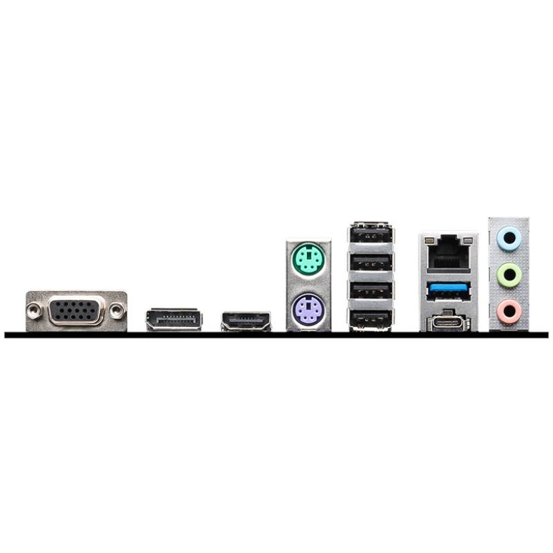 – 1 x conector de alimentación (ATX_PWR) – 1 x conector de alimentación (CPU_PWR) – 1 x ventilador de CPU – 2 x ventiladores de sistema – 2 x Panel frontal (JFP) – 1 x intrusión de chasis (JCI) – 1 x audio frontal (JAUD) – 1 x puerto de impresora (JLPT) – 1 x puerto COM (JCOM) – 1 x conector LED RGB (JRGB) – 1 x cabezal de pin TPM (compatible con TPM 2.0) – 4 x puertos USB 2.0 – 2 x puertos USB 3.2 Gen1 Tipo A Puertos traseros – VGA – DisplayPort – HDMI – Teclado / Ratón – USB 2.0 – Puerto LAN – Conectores de audio – USB 3.2 Gen 1 5 Gbps (Tipo A) – USB 3.2 Gen 2 10 Gbps (Tipo-C) |