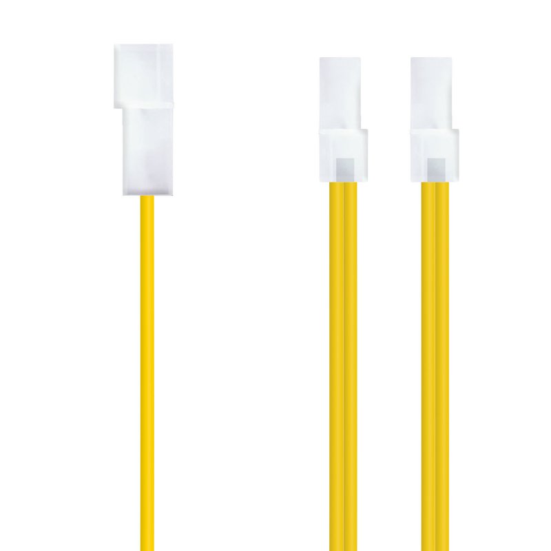 Conector Molex 4 pin macho en un extremo y dos conectores Molex 4 pin hembra en otro.