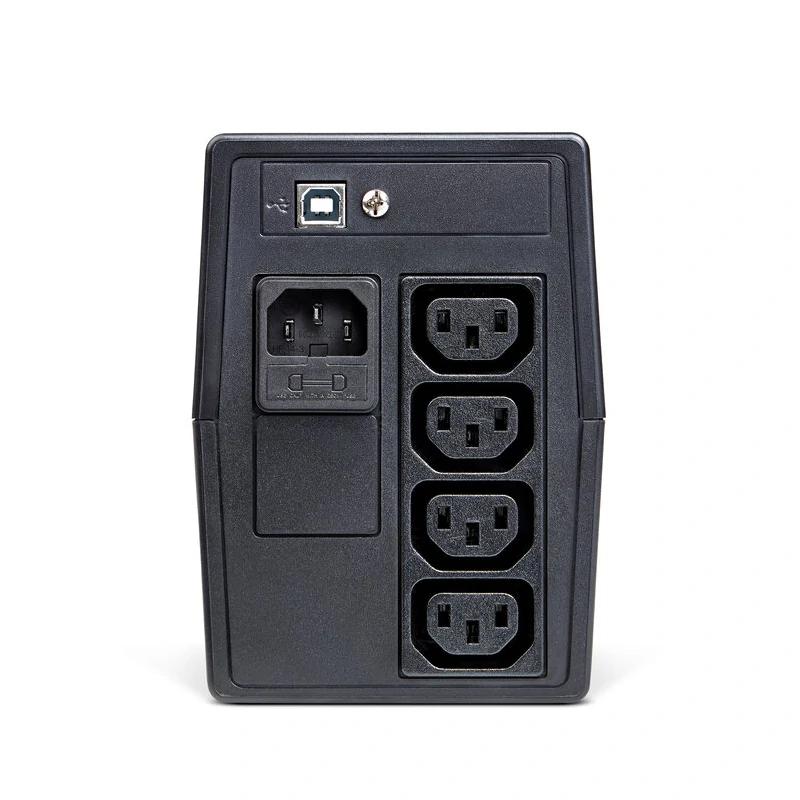 | Salida | – Tensión nominal: 220 V / 230 V / 240 V AC – Precisión tensión (modo batería): ±10% – Potencia (VA): 500 – Forma de onda (modo batería): Pseudosenoidal – Frecuencia: 50 / 60 Hz ± 1 Hz – Tiempo de transferencia: 2 / 6 ms – Tipo de tomas: IEC |