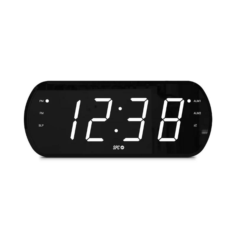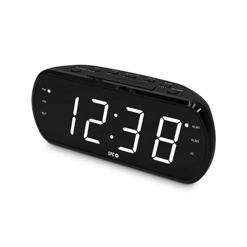 | Características | – Canales: FM – Potencia de salida: 1,5 W (Mono) – Salida alimentación USB – Búsqueda manual de emisoras – Alarma (Memoriza hasta 2 alarmas) – Snooze – Sleep – Dimmer Pantalla – Tipo: TFT LED – Resolución: 4 x 7 Segmentos, 1,8″ Batería y carga – Batería: 2 x AAA – 1,5V – Carga móvil Dimensiones y peso – 83 x 202 x 59 mm – 265g Contenido – SPC FRODI VIEW, – Guía de usuario – Alimentador |