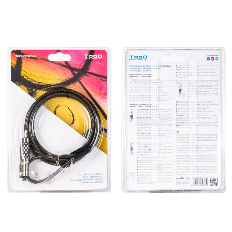 | Características | – Universal y fácil de usar – Cable de acero de 1.5 metros y 4.5mm de diámetro – Bloqueo con combinación de 4 dígitos * Solo válido para dispositivos con ranura de seguridad tipo NANO (no válido para ranuras tipo T- LOCK ni WEDGE) – Válido para portátiles, monitor, televisiones y dispositivos con ranura de seguridad tipo Kensington – Materiales: Cable de acero galvanizado con revestimiento de vinilo – Color: Gris Oscuro Dimensiones y peso – 152 x 210 x 35 mm – 0,113 kg |