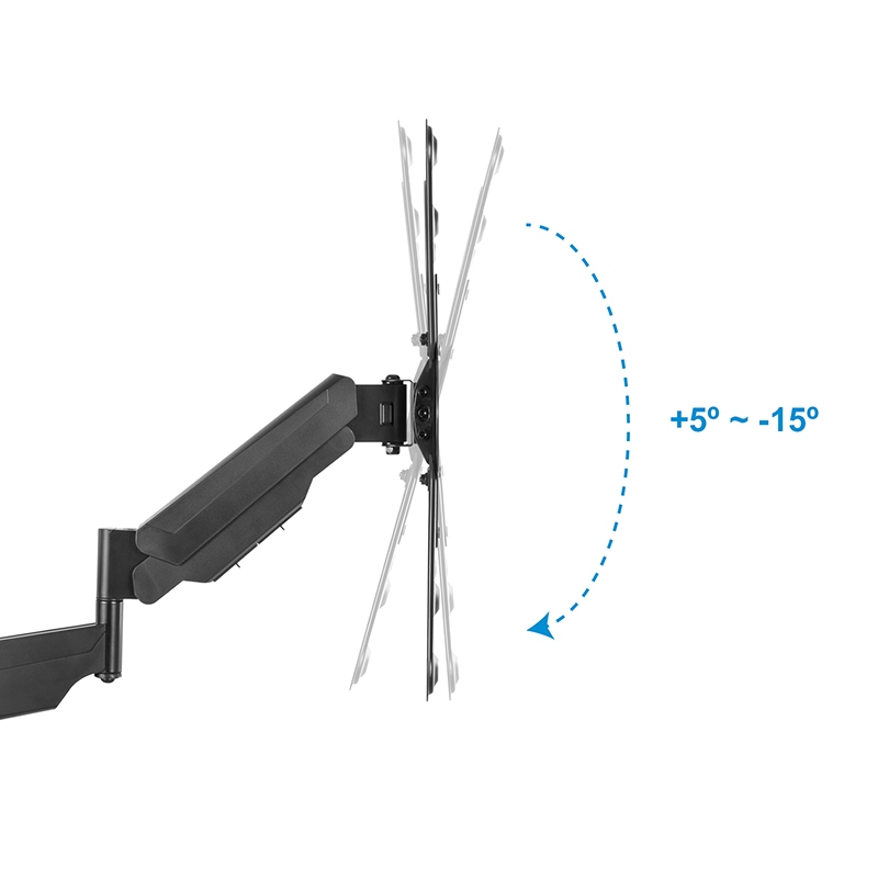 | Caracteristicas | – Pantallas soportadas: 23″- 55″ – Compatible con VESA: 75×75, 100×100, 200×100, 200×200, 300×300, 400×200, 400×300 y 400X400 – Peso soportado de pantalla: desde 5 kg hasta 30 kg – Brazo con pistón de gas regulable – Ángulo de inclinación: +5°/-15° – Ángulo de giro: +90°/-90° – Ángulo de nivelación: +3°/-3° – Distancia de pared: 60-565 mm – Sistema de organización de cables – Compatible con pantallas curvas – Color: Negro – Peso neto: 4,60 kg. Peso bruto: 5,83 kg – Medidas del embalaje: 505 x 365 x 75 mm Contenido – 1 x Soporte – 1 x Kit montaje (incluye herramientas) – 1 x Manual de instalación |