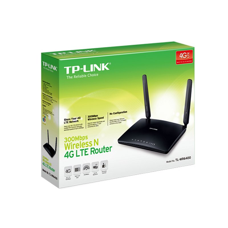 | Otras caracteristicas | – Certificaciones: CE, FCC, RoHS Contenido del Paquete: – Router 4G LTE Inalámbrico N a 300Mbps, TL-MR6400 – Cable Ethernet RJ45 – Fuente de Alimentación – Guía de Instalación Rápida – Adaptador de Tarjeta SIM Estándar a Micro – Adaptador de Tarjeta SIM Estándar a Nano Requisitos del sistema: – Microsoft Windows 98SE, NT, 2000, XP, Vista™ o Windows 7, 8, 8.1, MAC OS, NetWare, UNIX o Linux – Navegadores Internet Explorer 11, Firefox 12.0, Chrome 20.0, Safari 4.0 o superiores u otros navegadores que tengan Java Tarjeta SIM Factores Ambientales: – Temperatura de Funcionamiento: 0?~40? (32? ~104?) – Temperatura de Almacenamiento: -40?~70? (-40? ~158?) – Humedad de Funcionamiento: 10%~90% sin condensación – Humedad de Almacenamiento: 5%~90% sin condensación |
