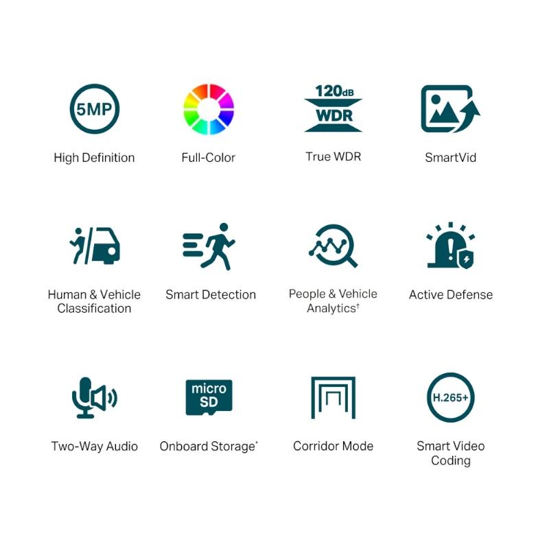 | Características | Red – Protocolo: TCP/IP, UDP, ICMP, HTTP, HTTPS, DHCP, DNS, RTSP, NTP, UPnP UDP, SSL/TLS – ONVIF – API: Interfaz de vídeo en red abierta (perfil S) – Vista en vivo simultánea 3 transmisiones principales y 3 subtransmisiones – Client: VIGI App, VIGI Security Manager, Web UI – Navegador web: Navegador web Google Chrome 57 y superior Firefox 52 y superior Safari 11 y superior Microsoft Edge 91 y superior – Nube – Seguridad: Protección con contraseña, cifrado HTTPS, filtro de dirección IP, autenticación implícita Audio – Comunicación de Audio: Audio Bidireccional – Entrada de audio – Salida de Audio – Compresión de audio – Frecuencia de muestreo de audio: 8KHz – Filtrado de ruido ambiental – Velocidad de bits de audio: 64 Kbps (ley G.711) Alarma – Clasificación inteligente de personas y vehículos de eventos – Detección de intrusión de área Detección de cruce de líneas Detección de personas Detección de vehículos Detección de entrada de región Detección de salida de región Detección de objetos abandonados Detección de eliminación de objetos Detección de merodeo – Detección básica: Detección de movimiento Detección de manipulación de vídeo Excepción (inicio de sesión ilegal) Detección de cambio de escena – Enlace de alarma: Grabación de vídeo con tarjeta de memoria, mensaje push, luz blanca intermitente – Notificación de salida: Mensaje push Alimentación – Fuente de alimentación: 12V DC ± 5%, Max. 9 W Enchufe de alimentación coaxial de 5,5 mm. PoE: 802.3af/at, clase 0, máx. 10.5W Dimensiones y peso – Φ123×84 mm – 0,24 g Contiene – Cámara de red VIGI – Guía de inicio rápido – Accesorios de montaje |